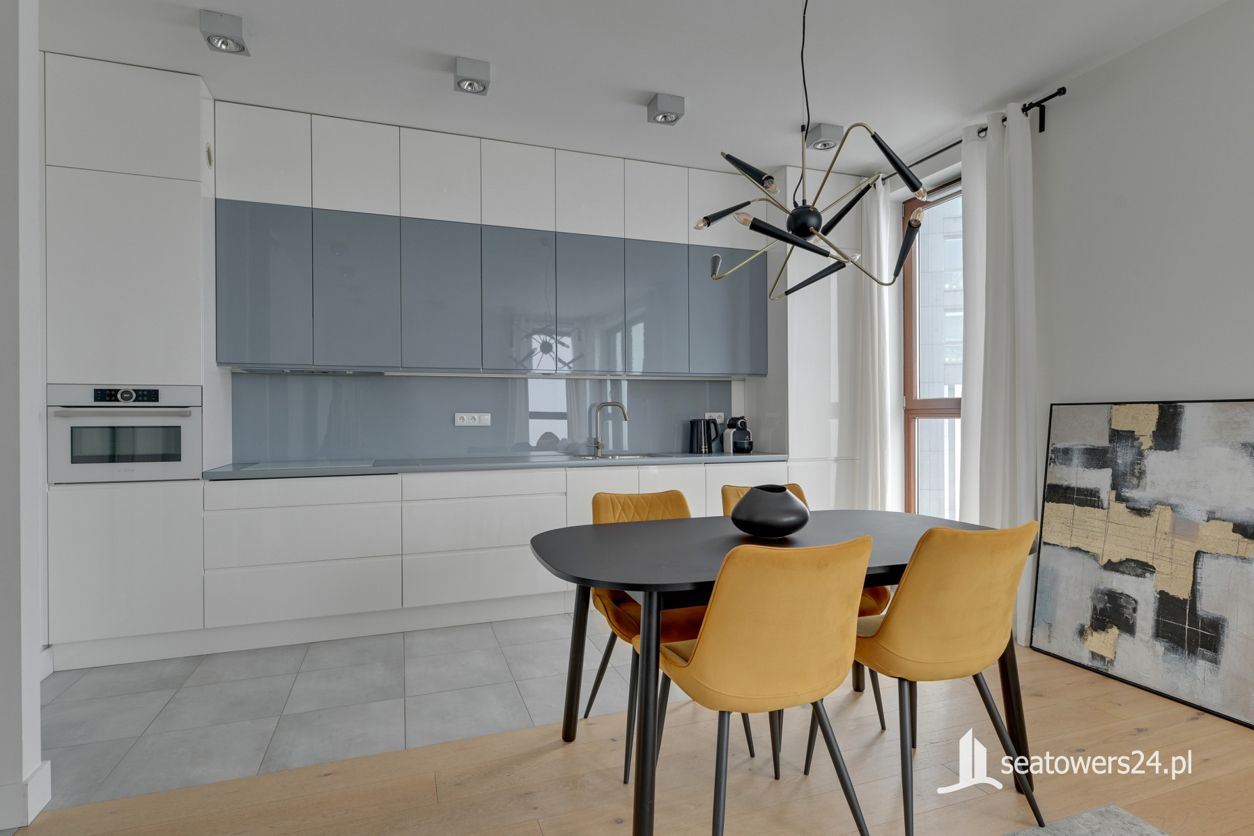 The apartment is located in the prestigious Sea Towers building with a beautiful view of the city. Around numerous restaurants, shops, picturesque Skwer Kościuszki, school, kindergarten, health care and everything you need for a comfortable life.