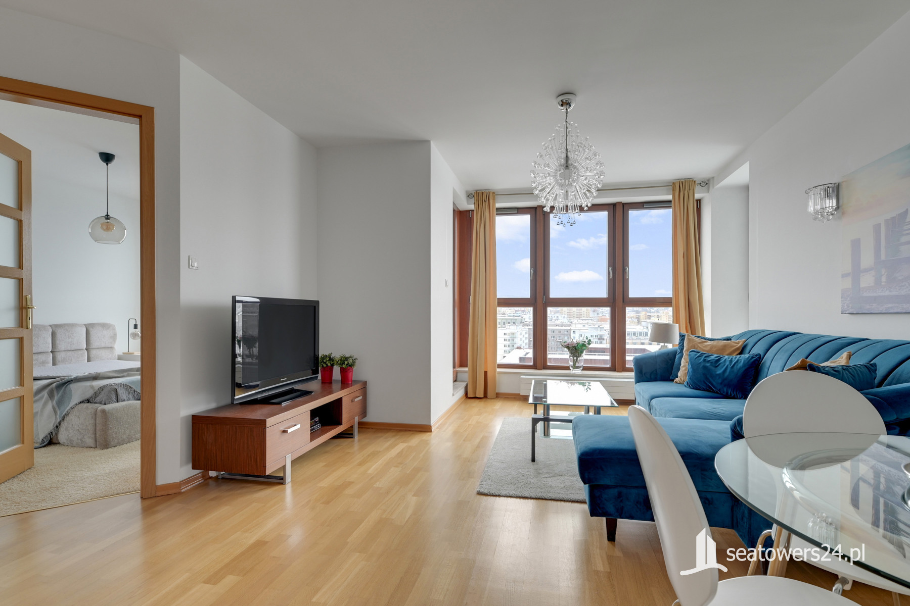 Dwupokojowy apartament z widokiem na miasto.